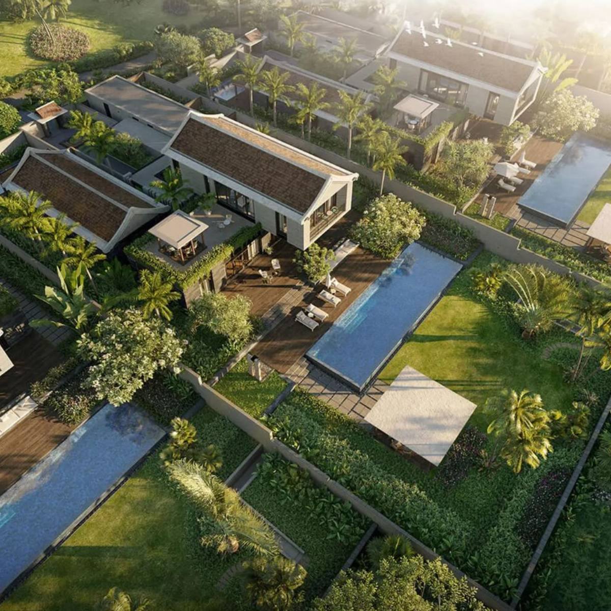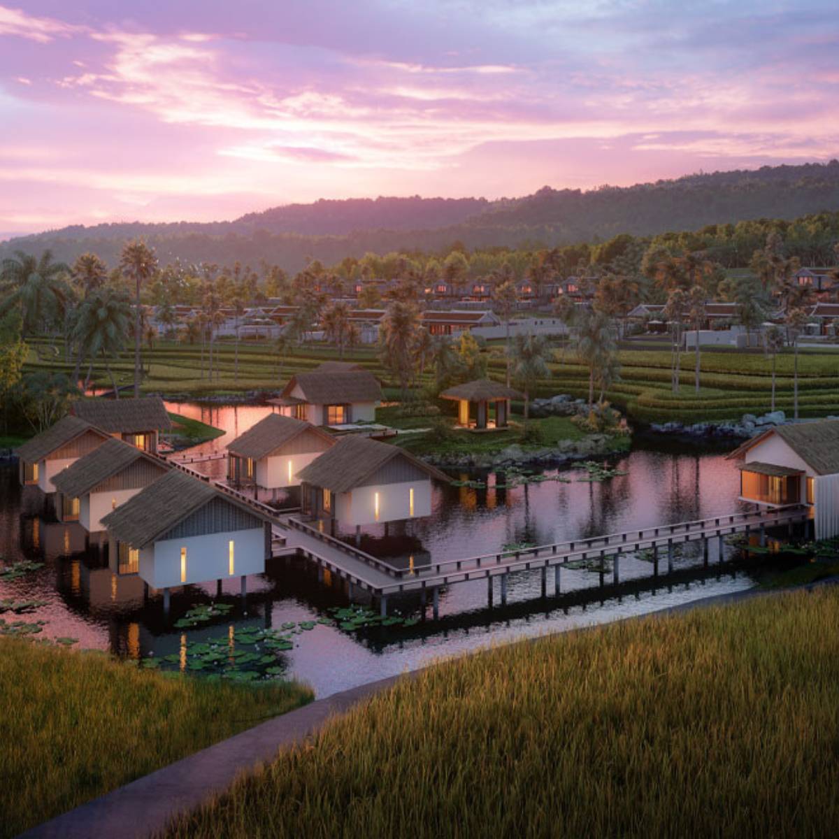 The Park Hyatt Phu Quoc is inspired by the strong family ties in Vietnamese culture, offering a sophisticated home-away-from-home where one can gather with extended family and friends. PHPQ is situated in one of the most unique and beautiful beaches on Phu Quoc Island Vietnam with stunning views ranging from the hilltop to the ocean. The villas pay homage to the traditional Vietnamese cultures, featuring exquisite handcrafted lacquer, rattan and bronze, alongside reinterpreted contemporary architecture and artwork. The concept is generated from the fishing village traditions of Vietnam, as well weaving, pottery and ceramics. They are a resourceful and creative people and this project reflect this. Streets and pathways are woven throughout the site to create this village concept. Waterways, green nodes, plazas and lush gardens cover the entire site to unify the master plan. The resort is designed to be reminiscent of a tranquil Vietnamese village with its bamboo paths and green terrace rice fields. The 65 villas are modelled after traditional Vietnamese houses and arranged around a myriad of site features in and out capturing the essence of the great site we have here in Phu Quoc. From this is born a totally pedestrian friendly hill and sea side village holding a great lake and overlooking the Gulf of Thailand.